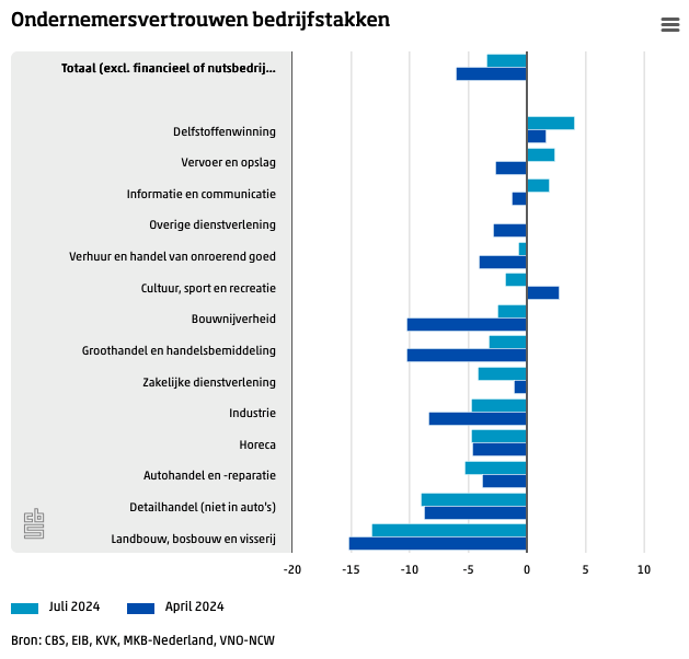 ZiPredactie 6 augustus 2024 0 reacties Print Ondernemers positiever over ontwikkeling winstgevendheidIn het tweede kwartaal is de winstgevendheid volgens ondernemers voor het eerst in ruim twee jaar verbeterd. Het ondernemersvertrouwen is gestegen, maar blijft nog licht negatief. Dat melden het CBS, KVK, het Economisch Instituut voor de Bouw, MKB-Nederland en VNO-NCW. Bron: CBS In het tweede kwartaal is de winstgevendheid volgens ondernemers voor het eerst in ruim twee jaar verbeterd. In veel bedrijfstakken zagen ondernemers de winstgevendheid nog wel afnemen. Het ondernemersvertrouwen is gestegen, maar blijft nog licht negatief, en komt aan het begin van het derde kwartaal van 2024 uit op -3,4. Trendbreuk: minder vraag naar freelancers in het derde kwartaal Gecorrigeerd voor seizoenseffecten zijn er iets meer ondernemers waarbij de winstgevendheid is verbeterd dan verslechterd in het tweede kwartaal. Tussen de bedrijfstakken zijn echter grote verschillen. In de bouwnijverheid zijn ondernemers het positiefst en geeft per saldo bijna 12 procent aan dat de winstgevendheid is verbeterd. In de autohandel en -reparatie is het saldo van positief (bijna 9 procent) omgeslagen naar het meest negatief van alle bedrijfstakken (ruim -8 procent). In de bedrijfstak vervoer en opslag sloeg het negatieve saldo juist om naar positief en dit nam ook het sterkst toe. Stemming in flexbranche daalt Uit de Conjunctuurenquête blijkt dat de stemming onder ondernemers in de flexbranche minder is geworden. Na een forse piek in april sinds een dieptepunt in maart, daalt de stemming sindsdien langzaam. RIM, Bovib, NBBU, ABU en VvDN willen dat concept wet VBAR wordt aangepast: ‘Lost het probleem niet op’ Bron: CBS Twee op de drie ondernemers schrijven zwarte cijfers eerste halfjaar Bijna 65 procent van de ondernemers sloot het eerste halfjaar van 2024 met winst af. Ruim 11 procent maakte verlies en bijna 17 procent gaf aan geen noemenswaardige winst of verlies gemaakt te hebben. Ondernemers in de bouwnijverheid schreven met bijna 81 procent het vaakst zwarte cijfers, gevolgd door ondernemers in de delfstoffenwinning, de autohandel en -reparatie en de groothandel. Rechtszaak: interim-manager wordt niet ineens een werknemer In de bedrijfstakken cultuur, sport en recreatie en de detailhandel waren de bedrijfsresultaten het minst positief. In de cultuur, sport en recreatie was bijna 38 procent van de ondernemers winstgevend en leed bijna 24 procent verlies. Ondernemersvertrouwen opnieuw minder negatief Aan het begin van het derde kwartaal van 2024 is het ondernemersvertrouwen voor het derde kwartaal op rij licht gestegen (+2,6). Vanaf eind 2021 tot eind 2022 daalde de stemmingsindicator sterk tot -22,2. Sindsdien herstelde dit zich geleidelijk. Het ondernemersvertrouwen ligt op dit moment iets boven het gemiddelde (-4,0) van de reeks vanaf 2012. Ondernemers in meeste bedrijfstakken nog negatief gestemd In de meeste bedrijfstakken is het ondernemersvertrouwen dit kwartaal gestegen, maar nog wel negatief. Bij de bouwnijverheid, de groothandel en de vervoer en opslag is het vertrouwen relatief het sterkst toegenomen. Bij de cultuur, sport en recreatie en de zakelijke dienstverlening daalde de stemmingsindicator het sterkst. In de delfstoffenwinning zijn ondernemers het positiefst gestemd, gevolgd door ondernemers in de vervoer en opslag en de informatie en communicatie. Het ondernemersvertrouwen is in de landbouw, bosbouw en visserij het laagst. Print Over de auteur Over ZiPredactie De ZiPredactie plaatst hier interviews en eigen artikelen. Daarnaast persberichten, aankondigingen of (met toestemming) overgenomen artikelen. (contact: info[AT]zipconomy.nl) Bekijk alle berichten van ZiPredactie