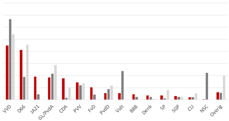 nieuws - VVD blijkt favoriete partij bij zzp’ers, verliest wel. D66 groeit flink. JA21 net voor GL/PvdA...