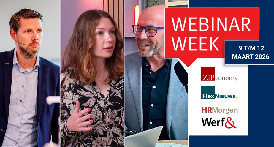 Webinar Week 202609-12 maart 2026 Van 9 tot en met 12 maart vindt de 17e editie van de Webinar Week plaats. Boegbeelden, specialisten en ervaringsdeskundigen delen hun inzichten over de arbeidsmarkt. In één week volledig bij zijn op het gebied van vast en flex, arbeidsmarktcommunicatie en recruitment? Dan mag je deze editie niet missen. Programma Dit jaar bundelen we de krachten van vier toonaangevende vaktitels, waarbij elke dag een specifiek thema centraal staat. Maandag 9 maart: Aanstekelijk Werkgeverschap | HRMorgen Dinsdag 10 maart: Recruitment & Arbeidsmarktcommunicatie | Werf& Woensdag 11 maart: Professioneel inhuren | ZiPconomy Donderdag 12 maart: Flexbureau 4.0 | FlexNieuws Maandag 9 maart Aanstekelijk Werkgeverschap door HRMorgen 9:30 – 10:15 Achter elk signaal zit een verhaal | Acture 10:45 – 11:30 Grip op verzuim: wat mag je wél vragen? | artra 12:00 – 12:45 NAU-directeur Kees van Nieuwamerongen over de Wtta | NAU 13:30 – 14:15 Succesvol LLO beleid vereist disruptief denken en doen | NCOI 14:45 – 15:30 Next step in HR ? | Compagnon Dinsdag 10 maart Recruitment & Arbeidsmarktcommunicatie door Werf& 9:30 – 10:15 Hoe activeer je latent werkzoekenden? | Swipe4Work 10:45 – 11:30 People strategy in een krappe arbeidsmarkt | Cruit 12:00 – 12: 45 Online recruitment f*ck-ups en hoe het beter kan! | Olifant Media 13:30 – 14:15 Meer kwaliteit. Meer behoud. Minder verloop. De kracht van doelgroepdata | Intelligence Group 14:45 – 15:30 Onderwerp volgt binnenkort! |SendtoDeliver 16:00 – 16:45 Maak van afgewezen sollicitanten ambassadeurs van je werkgeversmerk | The Talentpool Community Woensdag 11 maart Professioneel inhuren door ZiPconomy 9:30 – 10:15 Als uitzender meerwaarde creëren met behulp van VMS tooling | PIXID VMS 10:45 – 11:30 Krijgen wat je vraagt: slimmer flex inkopen | Bovib 12:00 – 12: 45 Zzp’ers inzetten: zo voorkom je schijnzelfstandigheid in 2026 | W&RK advies 13:30 – 14:15 Onderwerp volgt binnenkort! | Magnit Global Donderdag 12 maart Flexbureau 4.0 door Flexnieuws 9:30 – 10:15 Toekomstbestendig uitlenen en zzp’ers bemiddelen | Bureau Cicero 10:45 – 11:30 Consolidatie en financiering van de uitzendmarkt | Rabobank 12:00 – 12: 45 WTTA is geen checklist: wat 100+ inspecties blootleggen | Normec VRO en Flexpedia 13:30 – 14:15 Stop met alles zelf doen: kies je specialisme | BackOfficer 14:45 – 15:30 Flexbureau 4.0 in de praktijk: de lessen van JAM Werkt | Freshheads Inschrijven